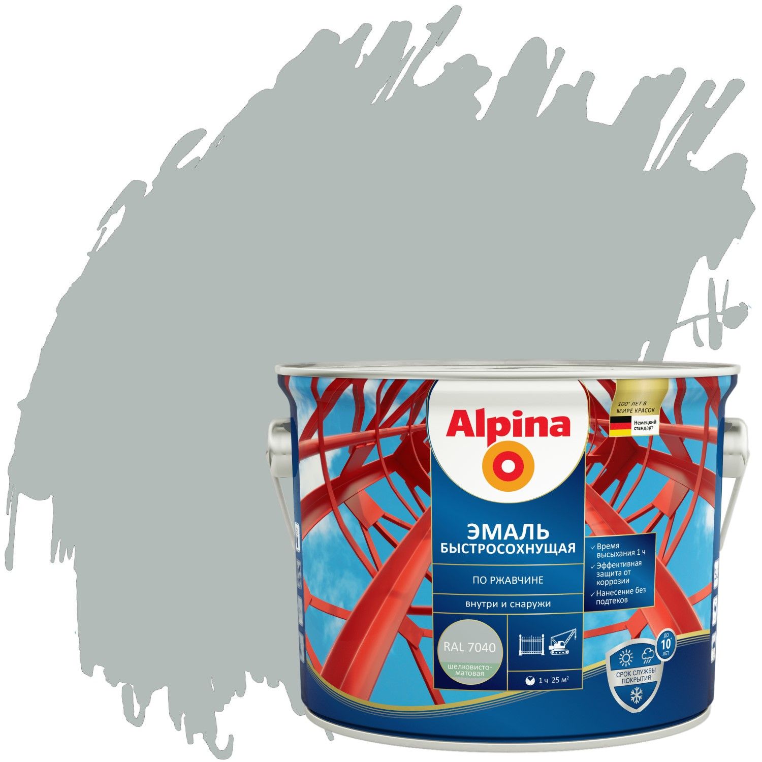 Грунт-эмаль алкид Alpina Эмаль быстросох по рж.шелковисто-мат RAL7040 2,00кг