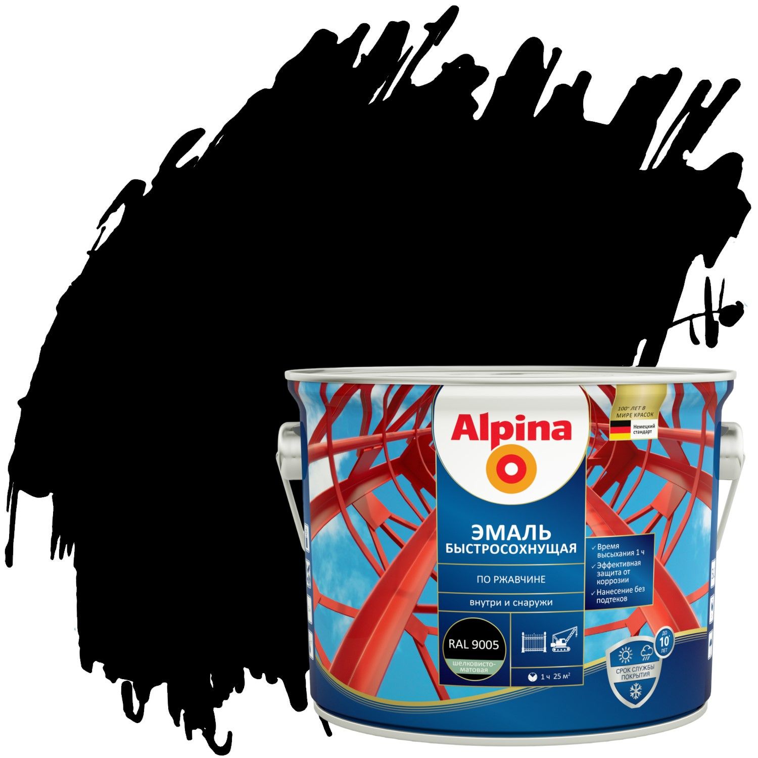 Грунт-эмаль алкид Alpina Эмаль быстросох по рж.шелковисто-мат RAL9005 2,00кг