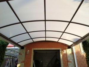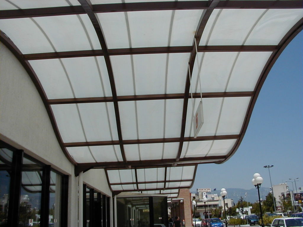 Сотовый поликарбонат применяется в строительной отрасли для возведения светопрозрачных конструкций, выдерживающих значительные ветровые и весовые нагрузки, а также для создания различных архитектурных форм: павильонов, остановок, рекламных конструкций.