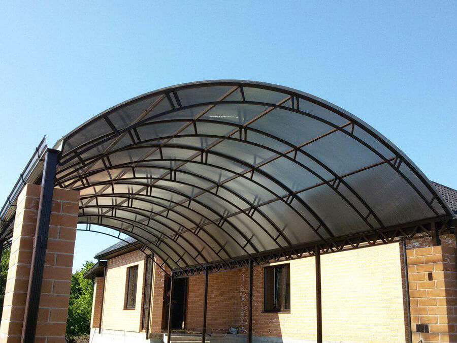 Сотовый поликарбонат применяется в строительной отрасли для возведения светопрозрачных конструкций, выдерживающих значительные ветровые и весовые нагрузки, а также для создания различных архитектурных форм: павильонов, остановок, рекламных конструкций.