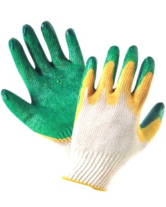 Перчатки, характеризуются стандартной плотностью вязки - 13 петель на дюйм - и совокупной толщиной смесовой нити 85 - 90 текс, 13 класс вязки.Основные качества: трикотажная основа хорошо пропускает воздух и не раздражает кожу рук, комфорту рук также способствует и отсутствие швов на перчатке. Пальцы с внутренней и внешней сторон, а также ладонная часть имеют латексное покрытие. Латекс довольно тонкий и пластичный состав, поэтому руки в латексных перчатках остаются чувствительными, тем не менее, это не уменьшает защитных функций перчаток.Также латекс обеспечивает противоскользящий эффект и отличный сухой захват предметов. Манжет-резинка из трикотажа надежно фиксирует перчатку на руке и защищает кисть от механических повреждений.Сфера применения: рабочие перчатки рекомендованы к применению в механических, сборочных, сельскохозяйственных работах, а также при любой другой работе с гладкими и скользкими поверхностями.Размер: длина - 24 см, манжет - 5 см.Состав: пряжа хб - 85%, нить пэ - 15%, латекс - 18 гр.Вес одной пары: 54-56 гр.