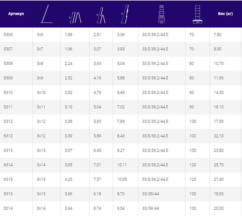 Лестница трехсекционная 3х7 5307, 7 ступеней.