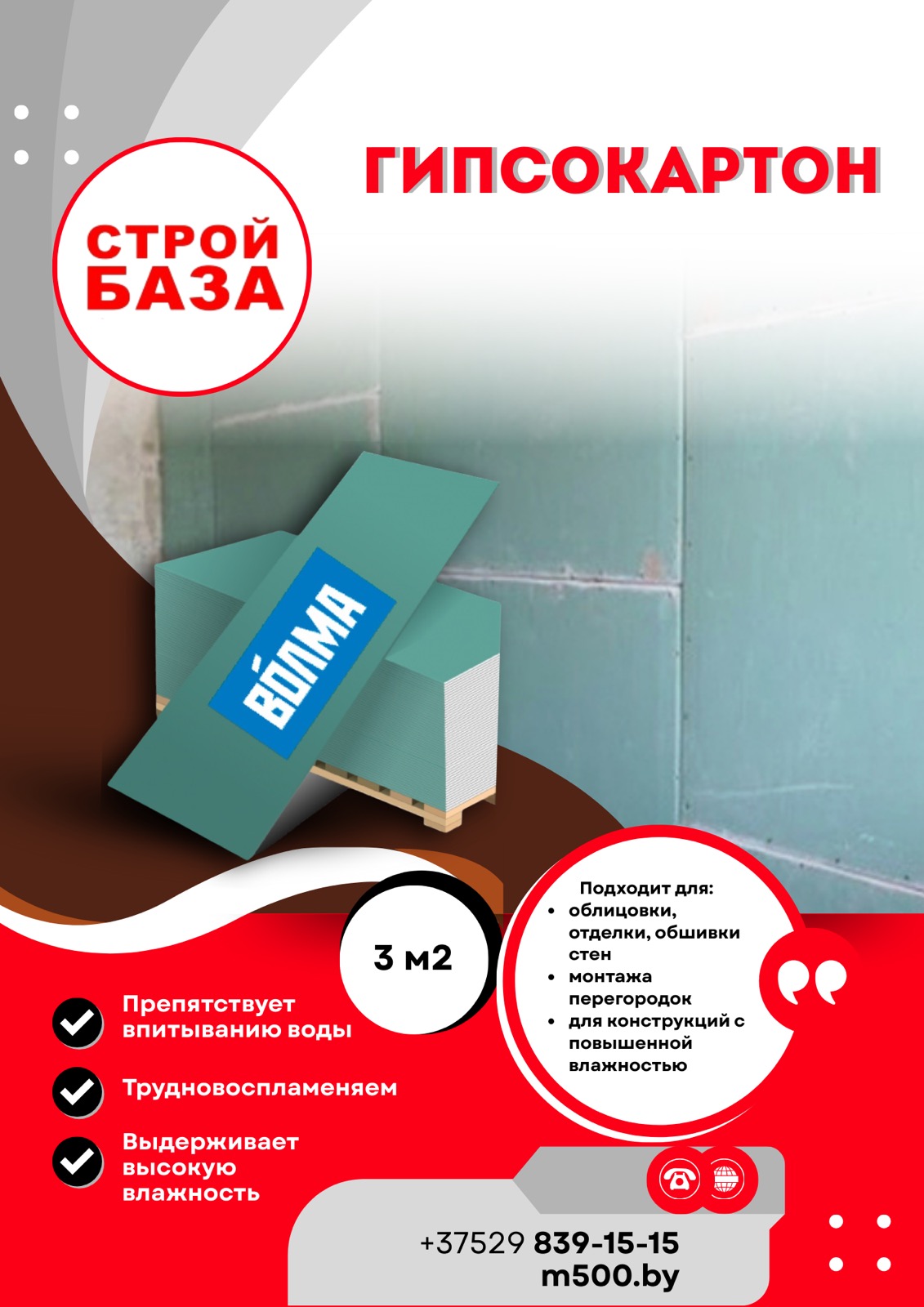 Гипсокартон (ГКЛ) влагостойкий Волма, превосходя требования ГОСТа, по качеству не уступает европейским аналогам.