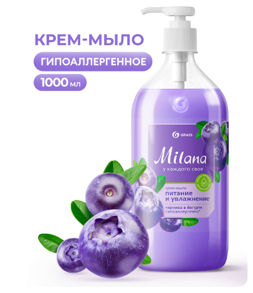 Крем-мыло увлажняющее "Milana черника в йогурте" ( флакон 1000 мл)