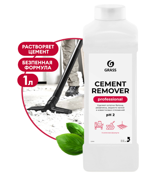 Кислотное моющее средство для удаления остатков цемента, бетона, ржавых пятен, водного камня, извести, солевых отложений, и других загрязнений оставшихся после строительства или ремонта. Применяется для мойки поверхностей при ремонте зданий и сооружений, фасадов, полов и стен в помещениях, для чистки оборудования для приготовления и транспортировки бетона, для внешней и внутренней мойки оборудования, и др. кислотостойких поверхностях, на объектах и в сфере строительства.