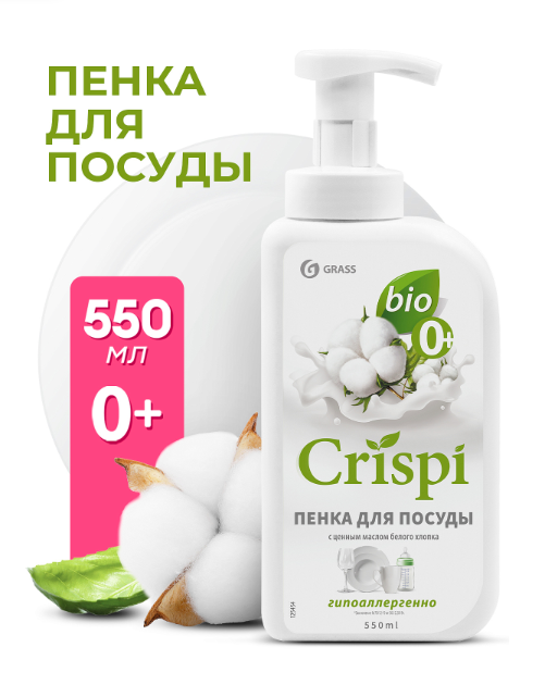 Средство для мытья посуды "CRISPI" ПЕНКА с ценными маслами белого хлопка ( 550 мл)