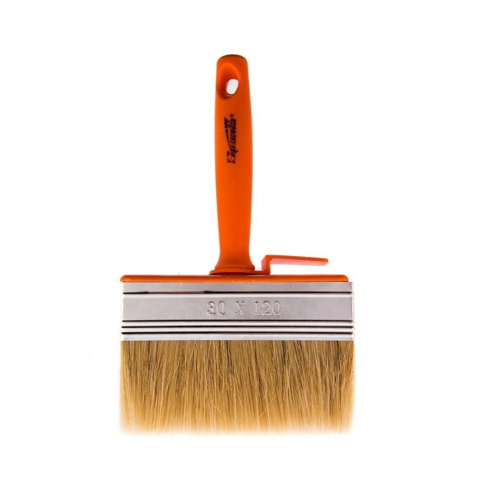 Кисть-ракля Sparta 841070 толщиной 50 мм и шириной 150 мм, с натуральной щетиной, пластмассовыми корпусом и ручкой, используется для малярных работ на участках большой площади, поэтому удобна для обработки стен, потолков и фасадов. Натуральная щетина устойчива к химическому воздействию, поэтому не деформируется и сохраняет упругость при работе с ЛКМ на водной основе, грунтовками, масляными красками и клеящими составами.