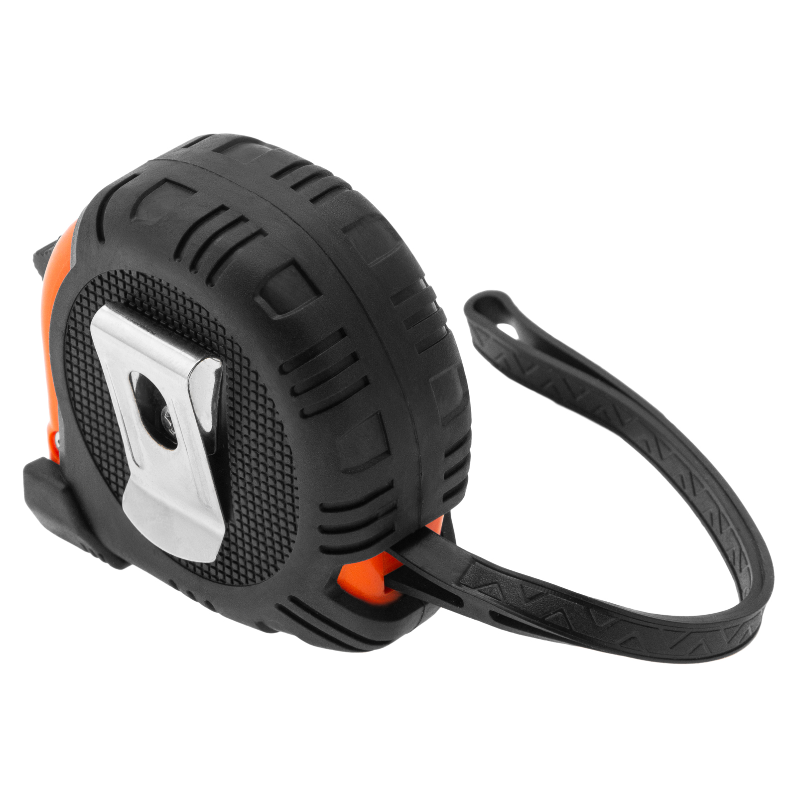 Прочная конструкция — рулетка с обрезиненным пластиковым корпусом, надежной возвратной пружиной и креплением зацепа на 3 заклепки прослужит долго.