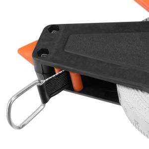 Рулетка позволяет быстро смотать ленту благодаря удобной удлиненной ручке возвратного механизма.