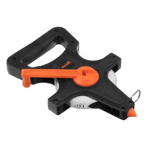 Рулетка позволяет быстро смотать ленту благодаря удобной удлиненной ручке возвратного механизма.