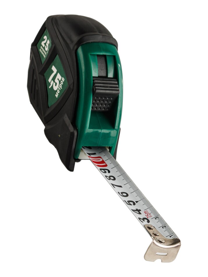 Рулетка прорезиненный корпус 7,5м*25мм РОШМА. Рулетка представляет собой ручной измерительный инструмент для бытовых нужд. Применяется при ремонтных и отделочных работах. Рулетка имеет прочный прорезиненный корпус. Измерительная шкала - сантиметровая.