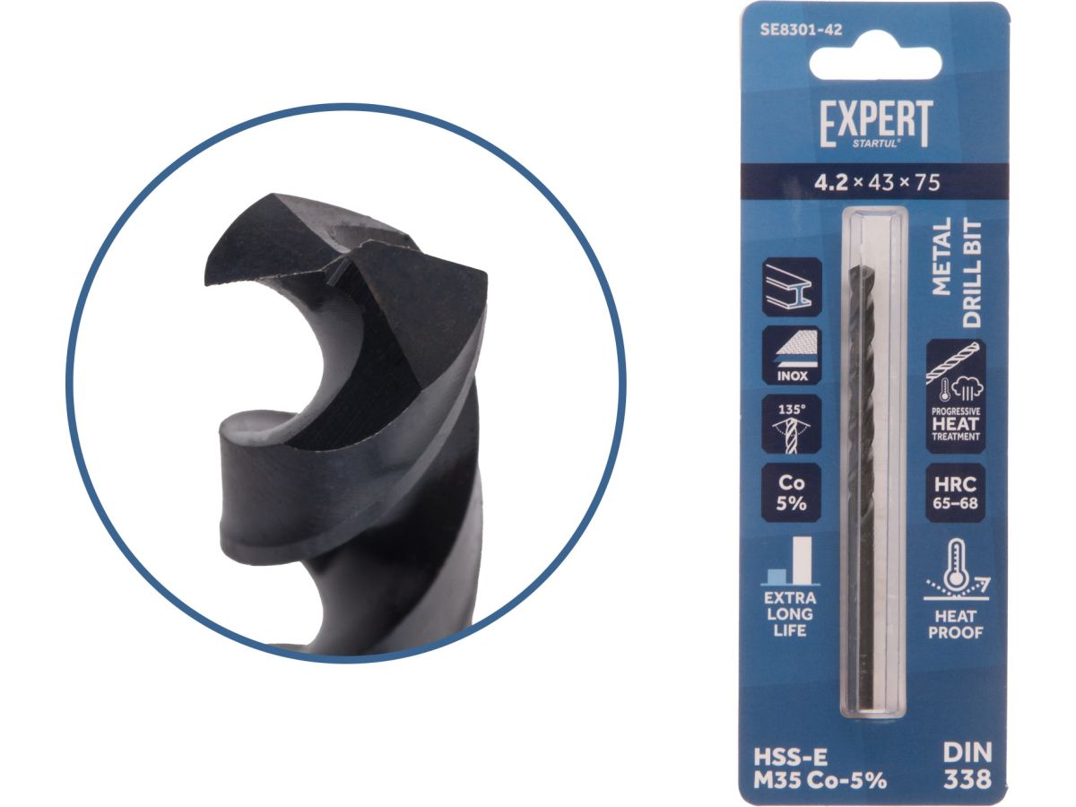 Для сверления отверстий в конструкционных углеродистых и легированных сталях, нержавеющих и жаростойких сталях прочностью до 1000 Nmm2, титана и его сплавов, бронзы, латуни, цветных металлах, чугуне, твердом пластике. Сверло спиральное изготовлено из высококачественной быстрорежущей стали с уже вышлифованным профилем. Выход стружки легче, температура нагрева и биение сверла в патроне меньше, стойкость режущей части выше. Отверстия имеют высокую точность. Подточка поперечных режущих кромок позволяет начинать сверление без предварительного засверливания центрирующим сверлом или кернения. Повышенный ресурс использования. Обладают повышенной производительностью, износостойкостью и красностойкостью. Максимально точное и аккуратное сверление. Дополнительная твердость и повышенная теплостойкость за счет содержания в сплаве кобальта и прогрессивной ступенчатой термической обработки. Подходят для профессионального использования.Особенности сплава: содержание кобальта 5%.