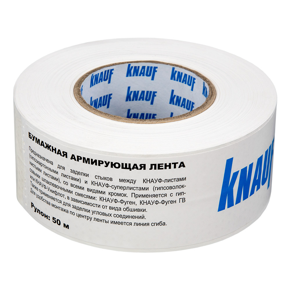ента армирующая КНАУФ — это армирующая лента, изготовленная из белой специализированной бумаги с армирующими синтетическими волокнами. Предназначена для армирования стыков гипсокартонных и гипсоволокнистых листов разных видов с любыми типами кромок и предотвращения появления трещин при отделочных работах.