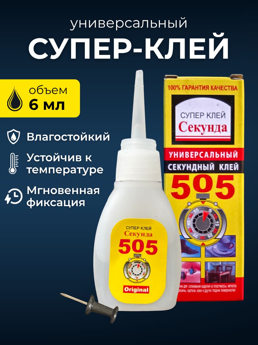 Супер клей 505 Секунда — оригинальный секундный (цианакрилатный) универсальный клей для быстрого и прочного ремонта.