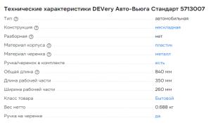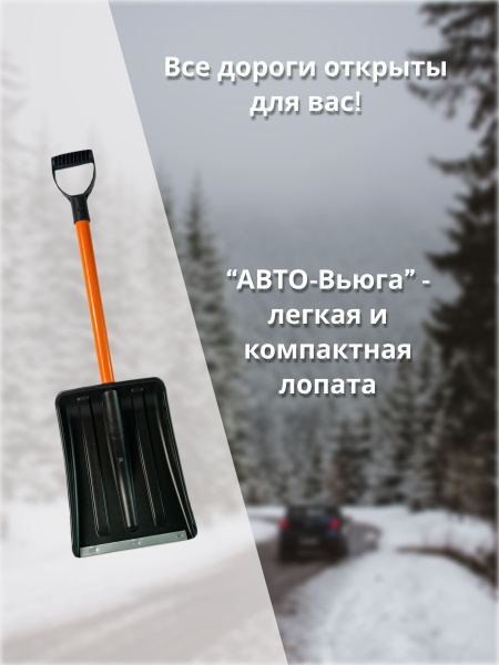 Лопата автом. "Авто-Вьюга Стандарт" неразб. 260х350мм с оцин/пл ковш черн, чер оранж, V ручка