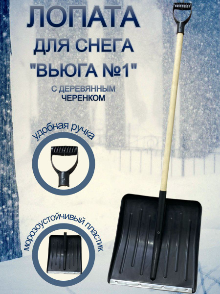 Лопата снеговая "Вьюга №1" 428х490мм пласт. (оц. планка) с деревянным черенком и пласт. ручкой.
