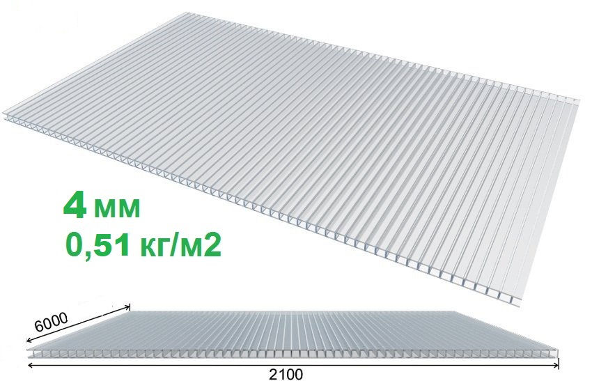Поликарбонат сотовый 4мм прозрачный 2100*6000мм "Master".