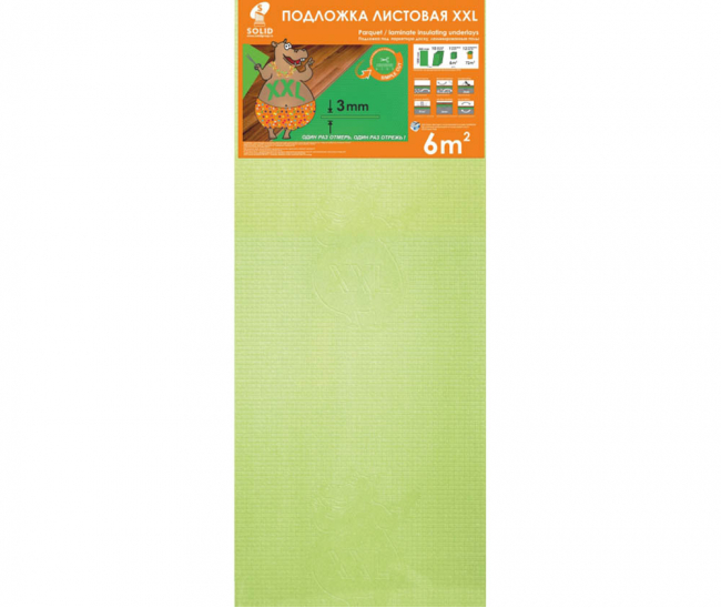 Применяется под паркетную доску, ламинированные и пробковые полы. Специальная разметка на поверхности подложки позволяет легко отмерять и резать полотно.