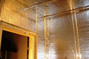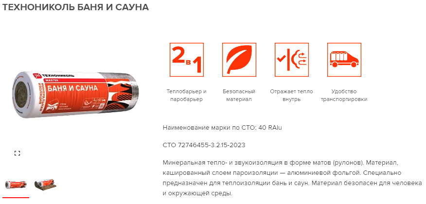 Материал, кашированный слоем пароизоляции — алюминиевой фольгой. Специально предназначен для теплоизоляции бань и саун.